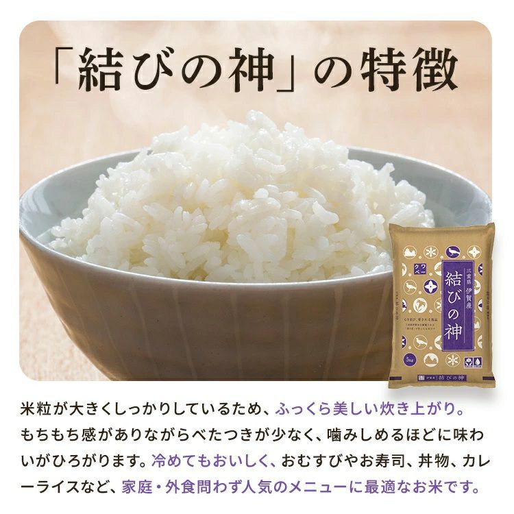他の画像を見る 送料無料 心を結び、愛される逸品 新米 令和7年産 三重県伊賀産結びの神 5kg 価格 ¥ 4,713 税込 〜 価格 ¥ 税込 三重県伊賀市の厳選された「農の匠」が作ったお米 詳細を見る お気に入りに登録する